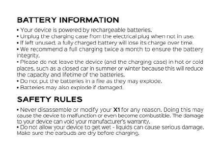 TREBLAB X1 - Battery Information; Safety Rules