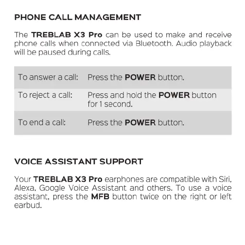 TREBLAB X3 Pro - Phone Call Management; Voice Assistant Integration
