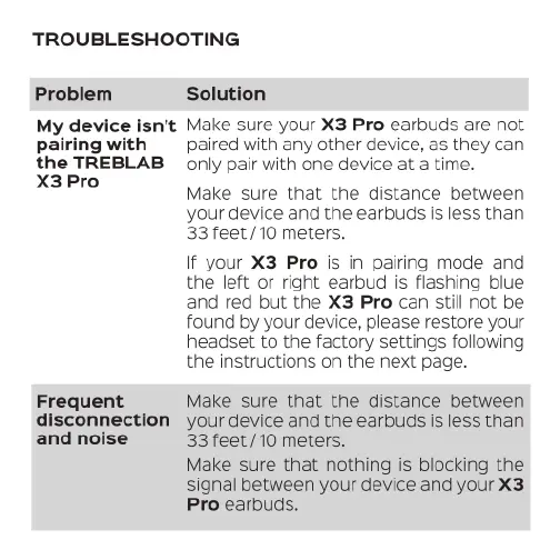 TREBLAB X3 Pro - Troubleshooting TREBLAB X3 Pro; Pairing Issues; Disconnection and Noise