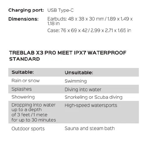 TREBLAB X3 Pro - IPX7 Waterproof Standard