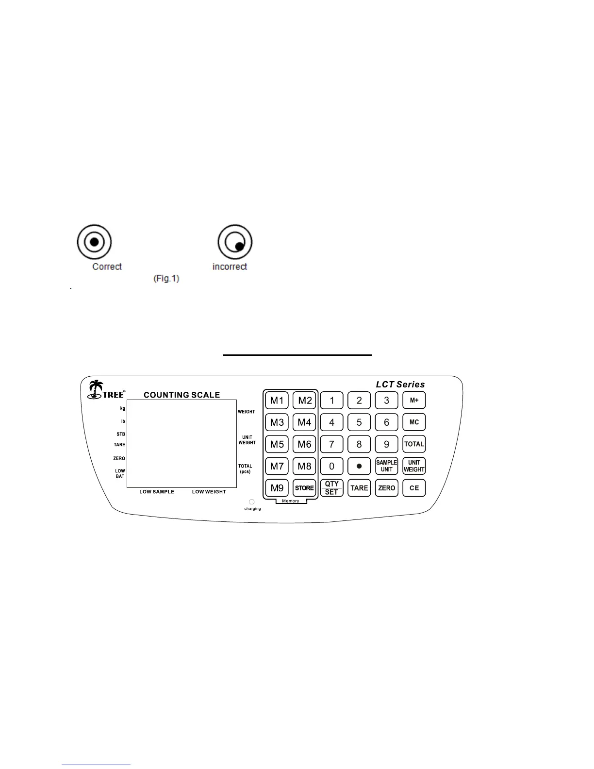 The weight display indicates the gross or net weight on the weighing pan.