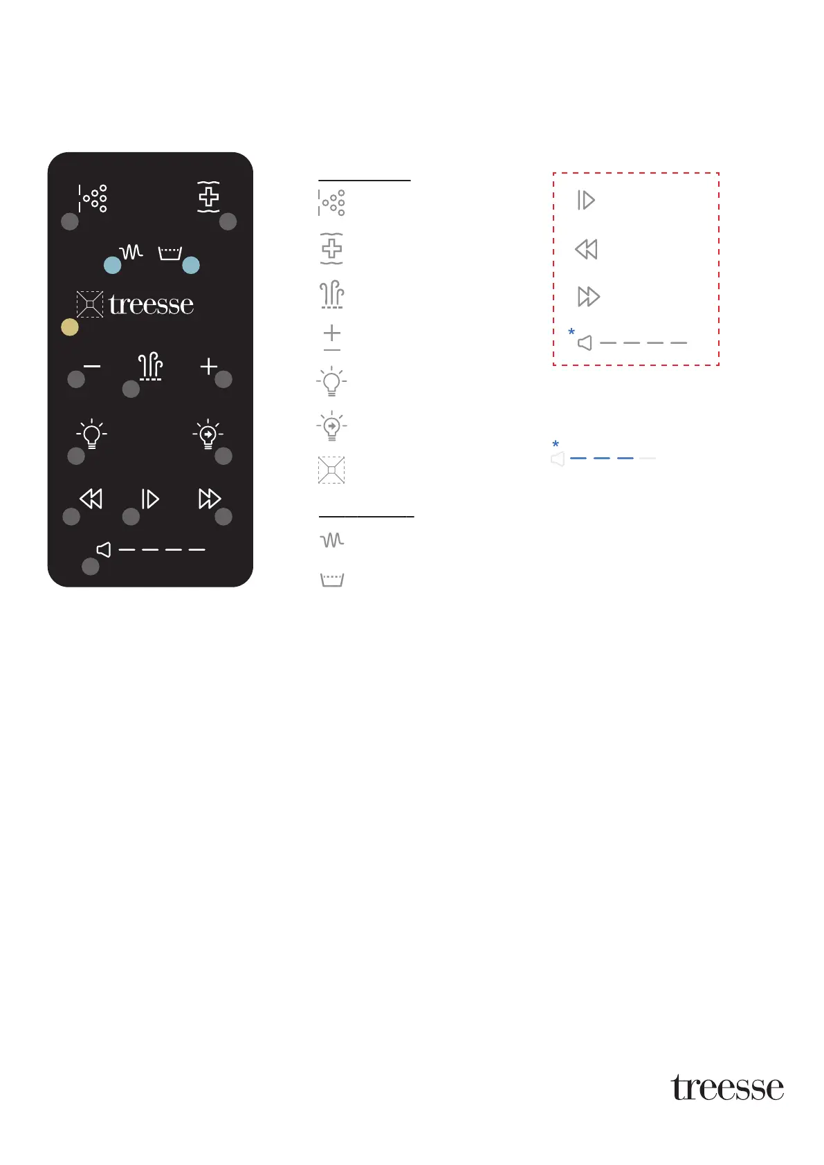 the remote control will display all functions of the associated tub.