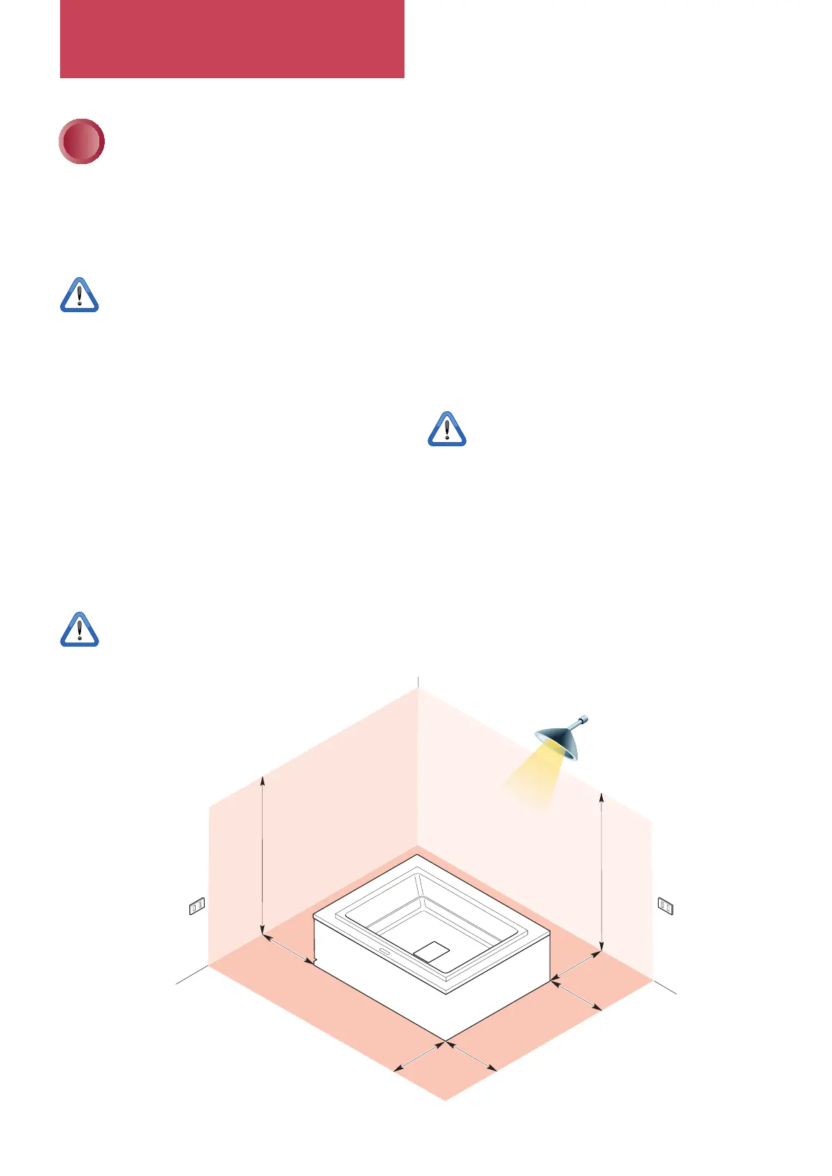 Local regulations prohibit any electrical installation (plug sockets, switches, lamps, etc.) in the area surrounding