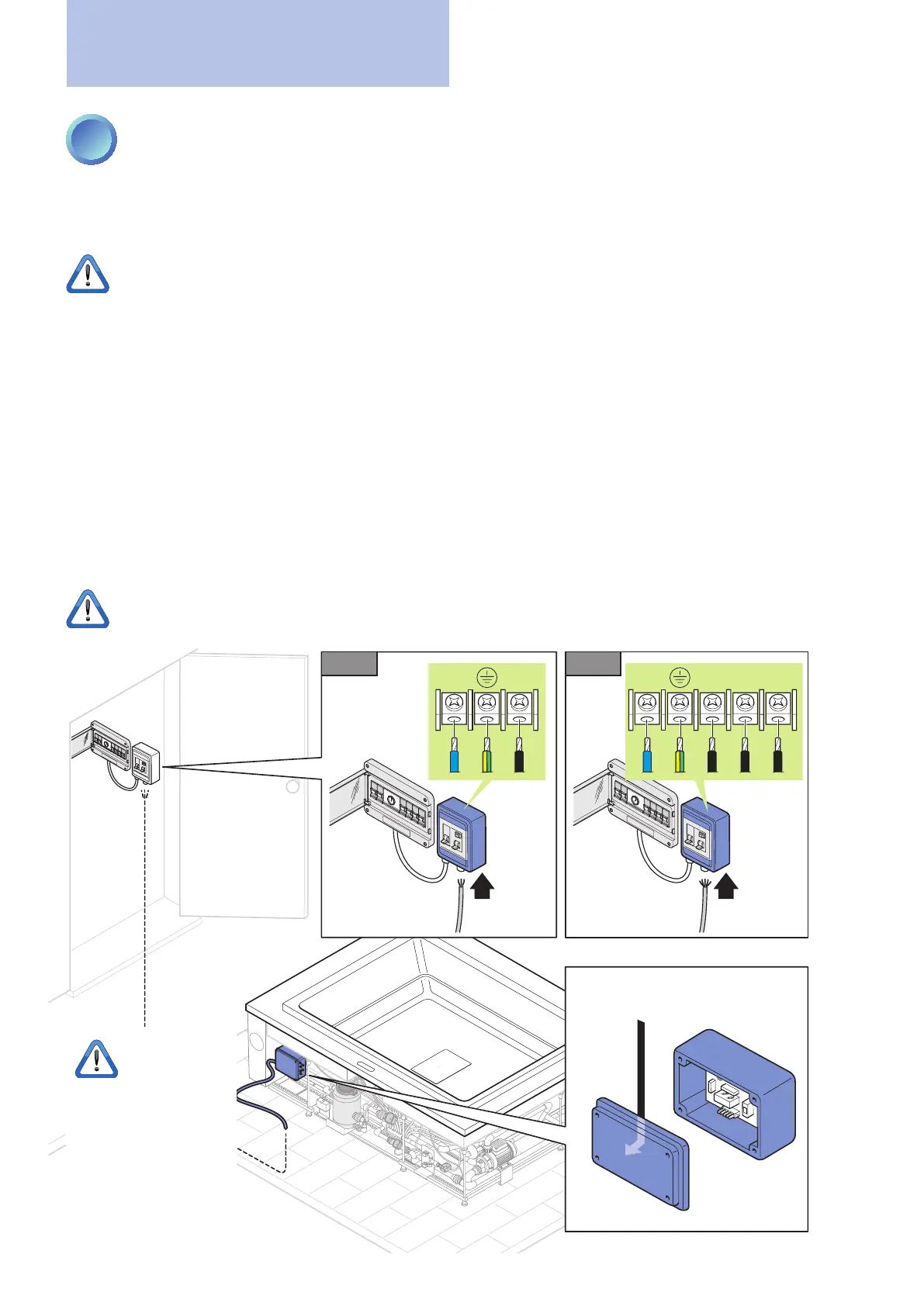 • Controlled by a multi-pole switch with a contact gap of at least 3 mm and a breaking capacity equal to 60A (or in