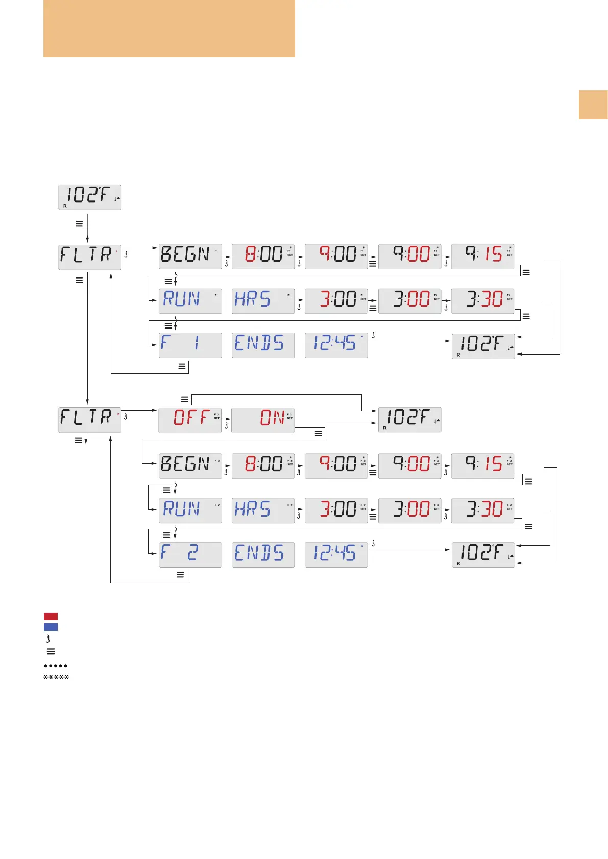 The ltration cycles are set based on the duration. Start time is indicated by an “A” or “P” in the bottom right corner