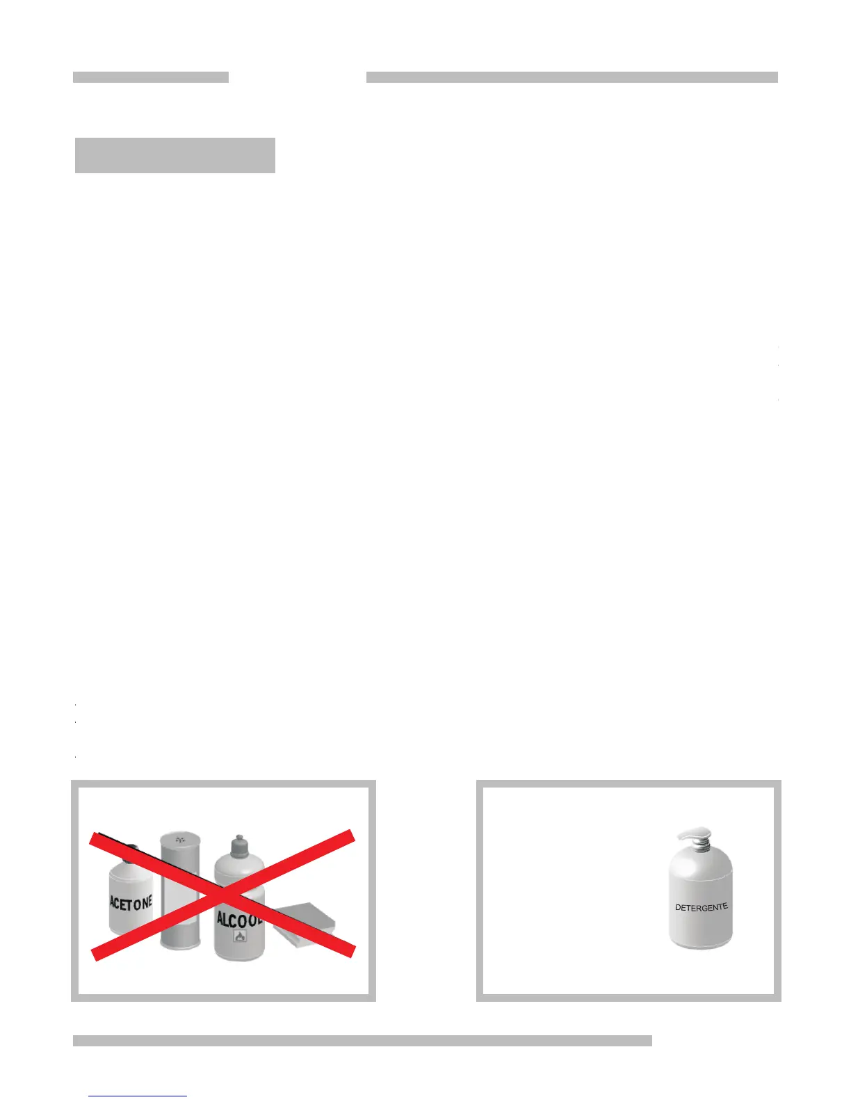 ASSOLUTAMENTE NON USARE PRODOTTI ABRASIVI, SOSTANZE A BASE ALCOLICA,