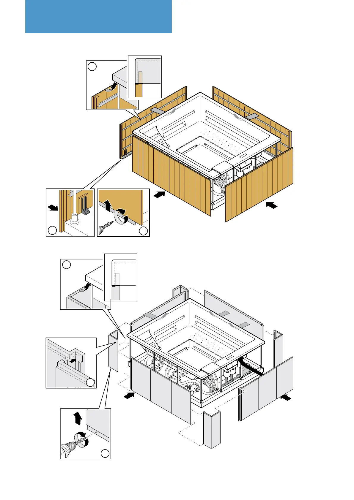 Mount the wood or laminate resin panels as shown in