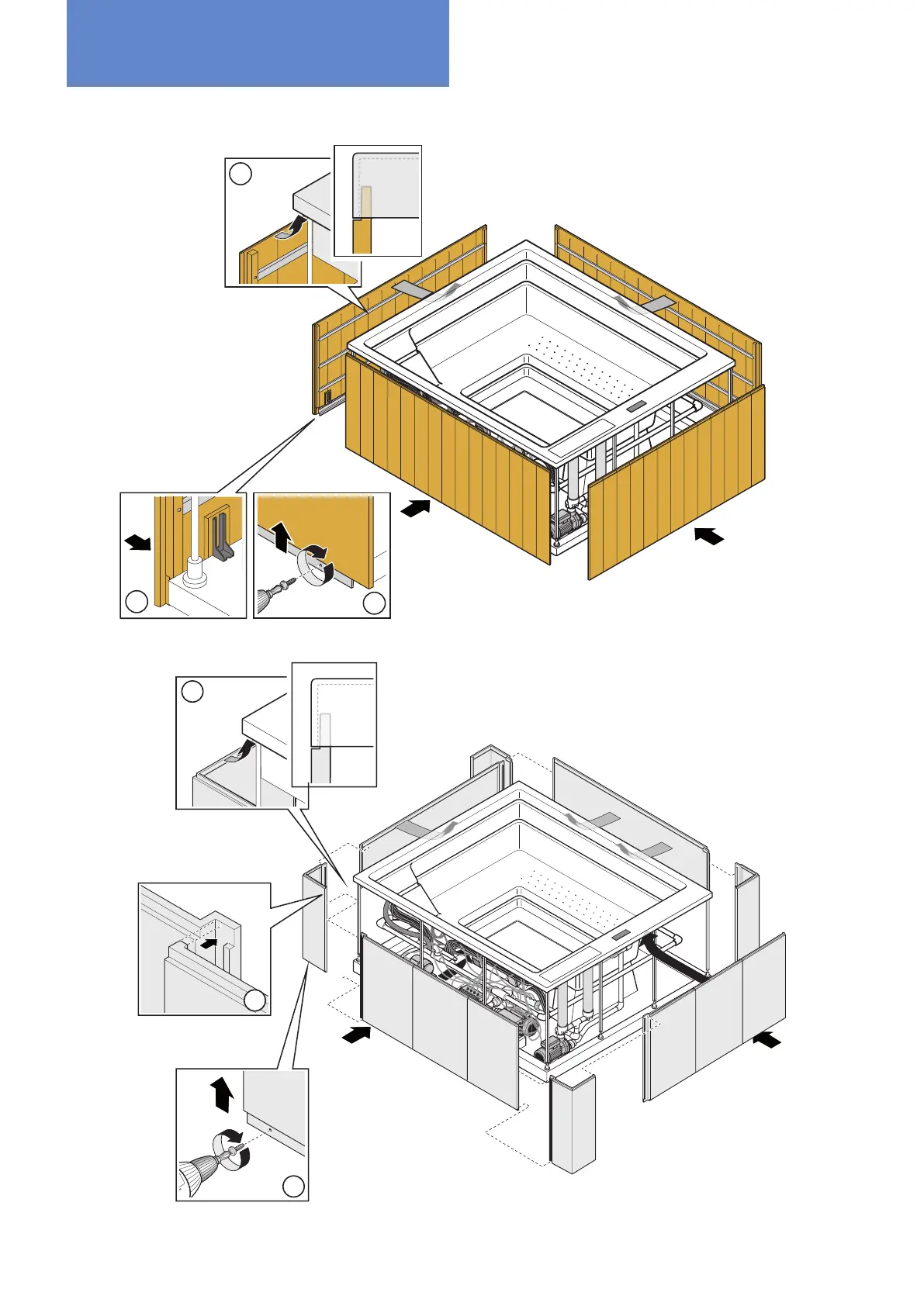 Mount the wood or laminate resin panels as shown in