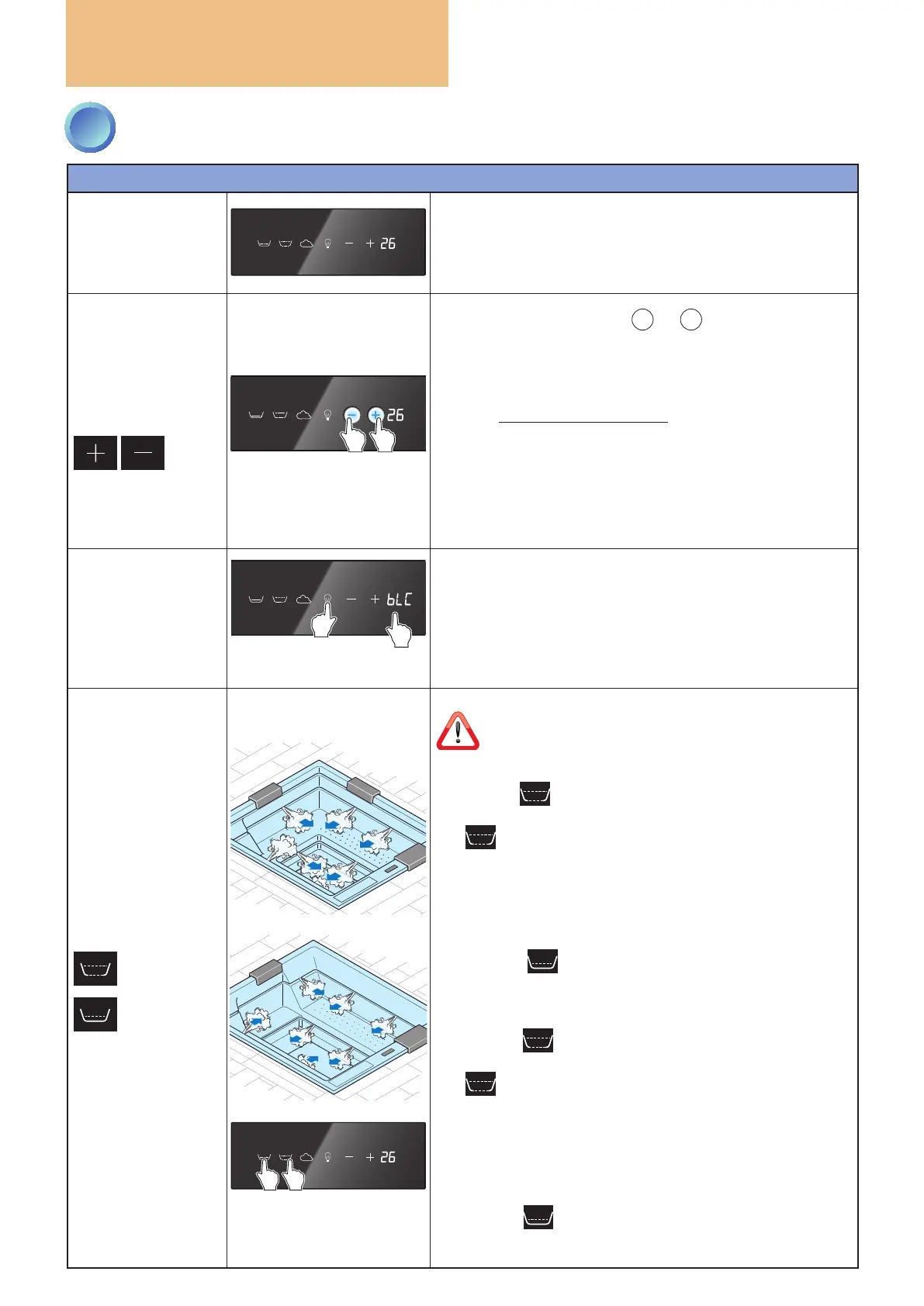 Pressing the key activates the upper and lower whirlpool