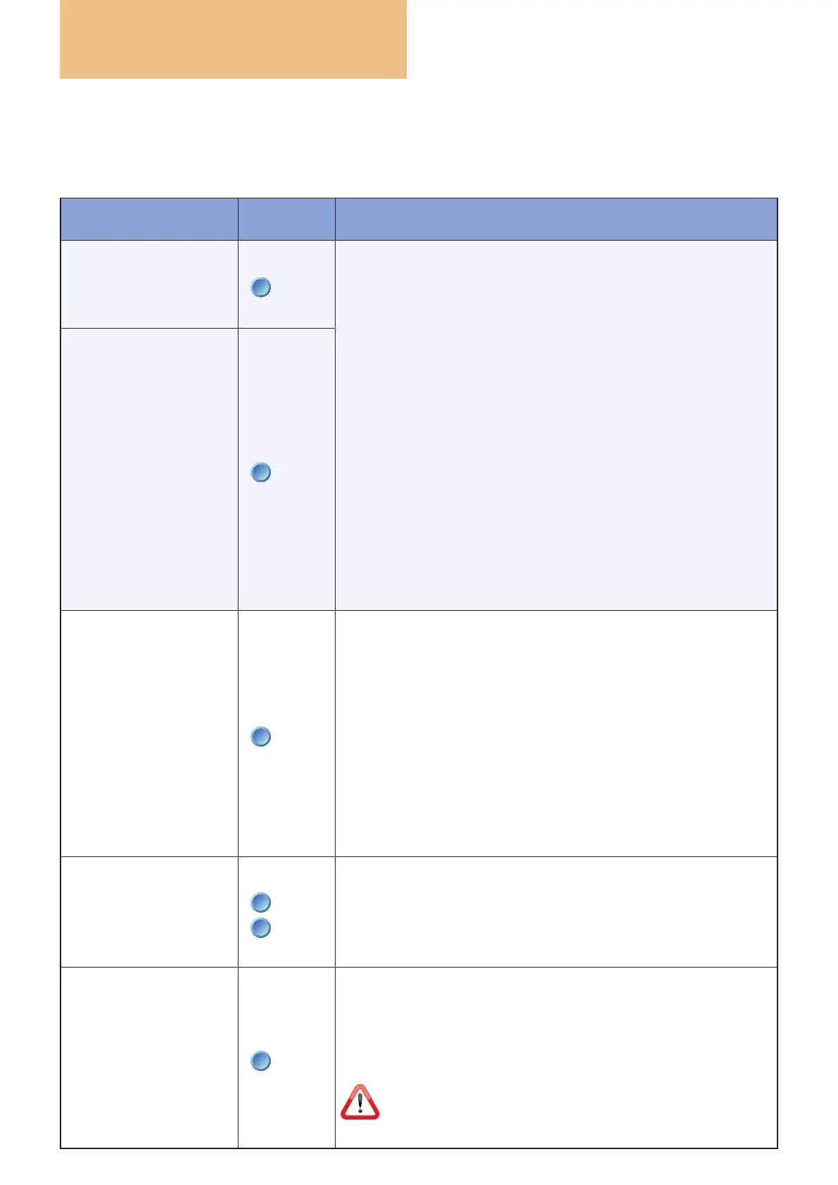 Below is a table that summarises all the activities necessary for proper maintenance. Those in blue should be carried