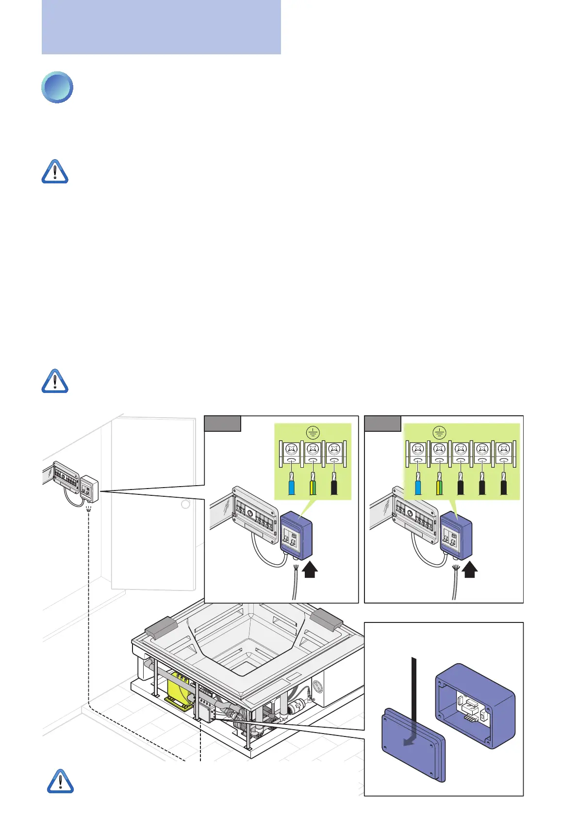 • Controlled by a multi-pole switch with a contact gap of at least 3 mm and a breaking capacity equal to 60A (or in