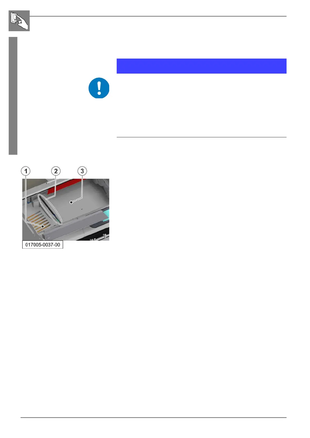 - If the blade still protrudes into this area (2), the machine must be