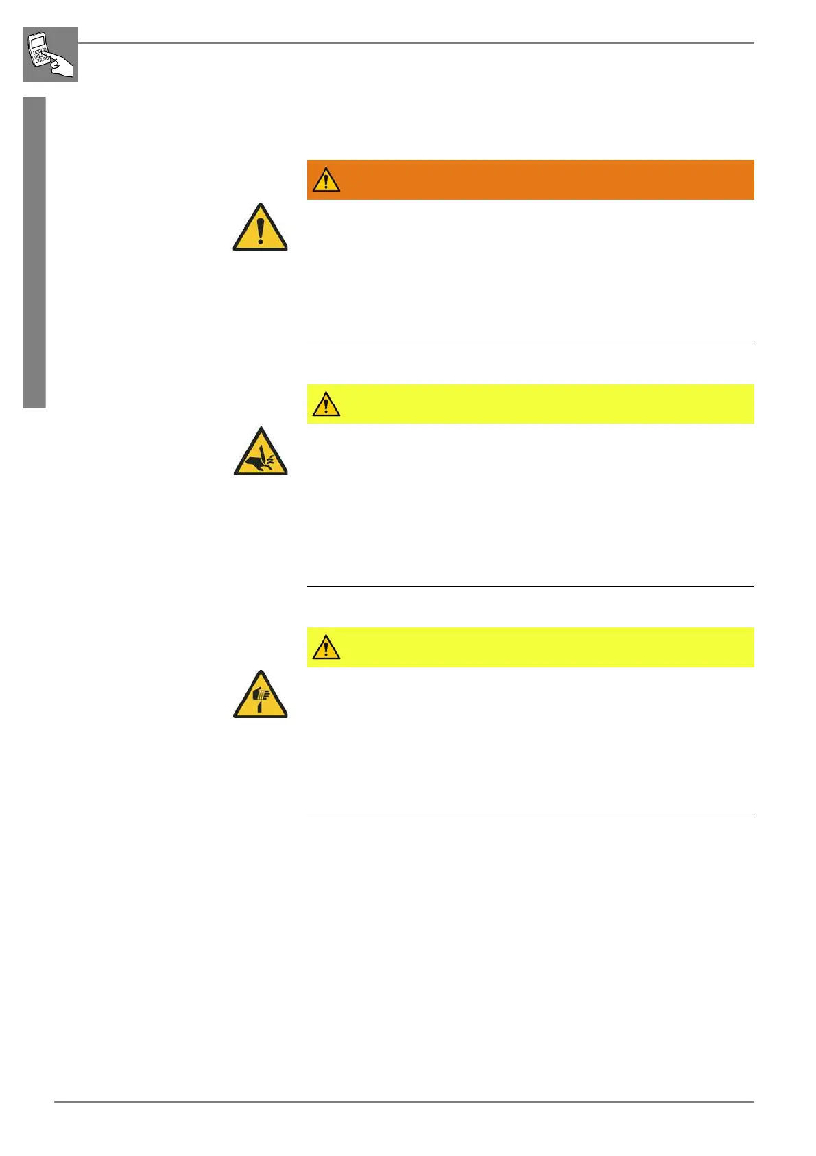 Hazards arising from the machine for the operator and the machine must