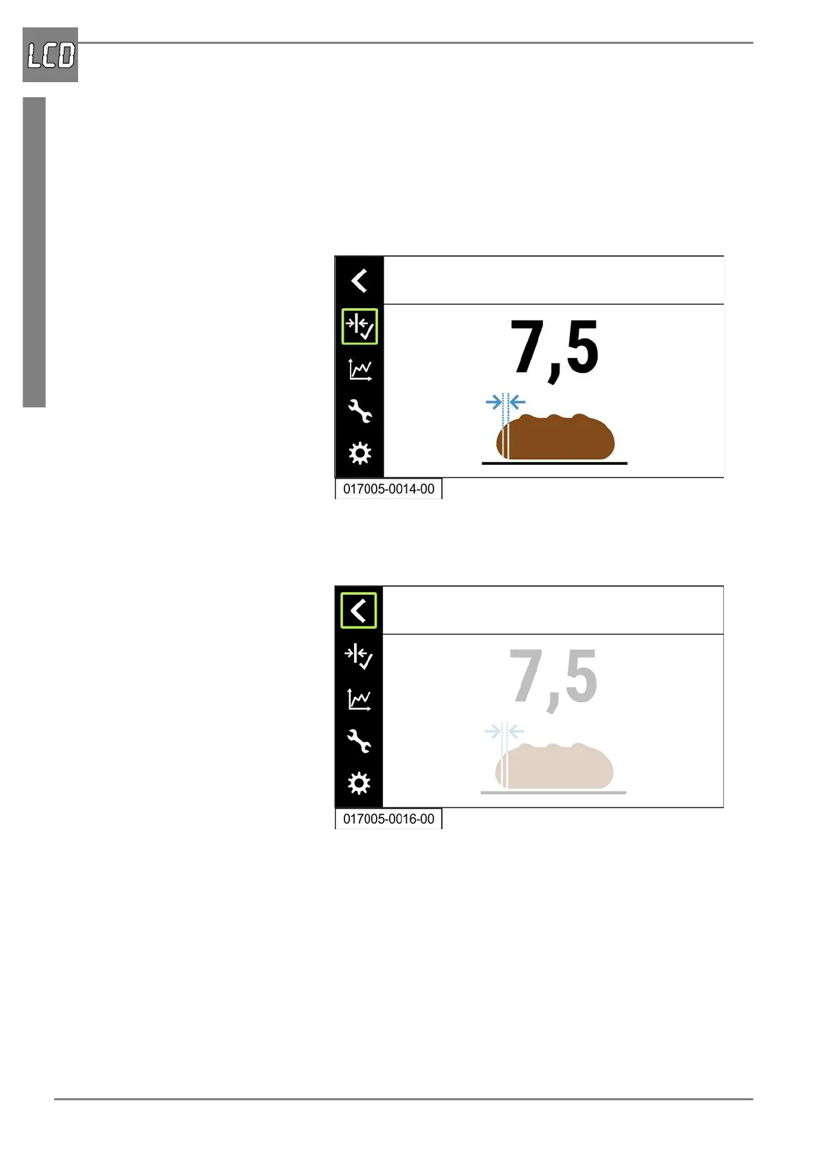 ing of the menu is indicated by the green frame around the menu