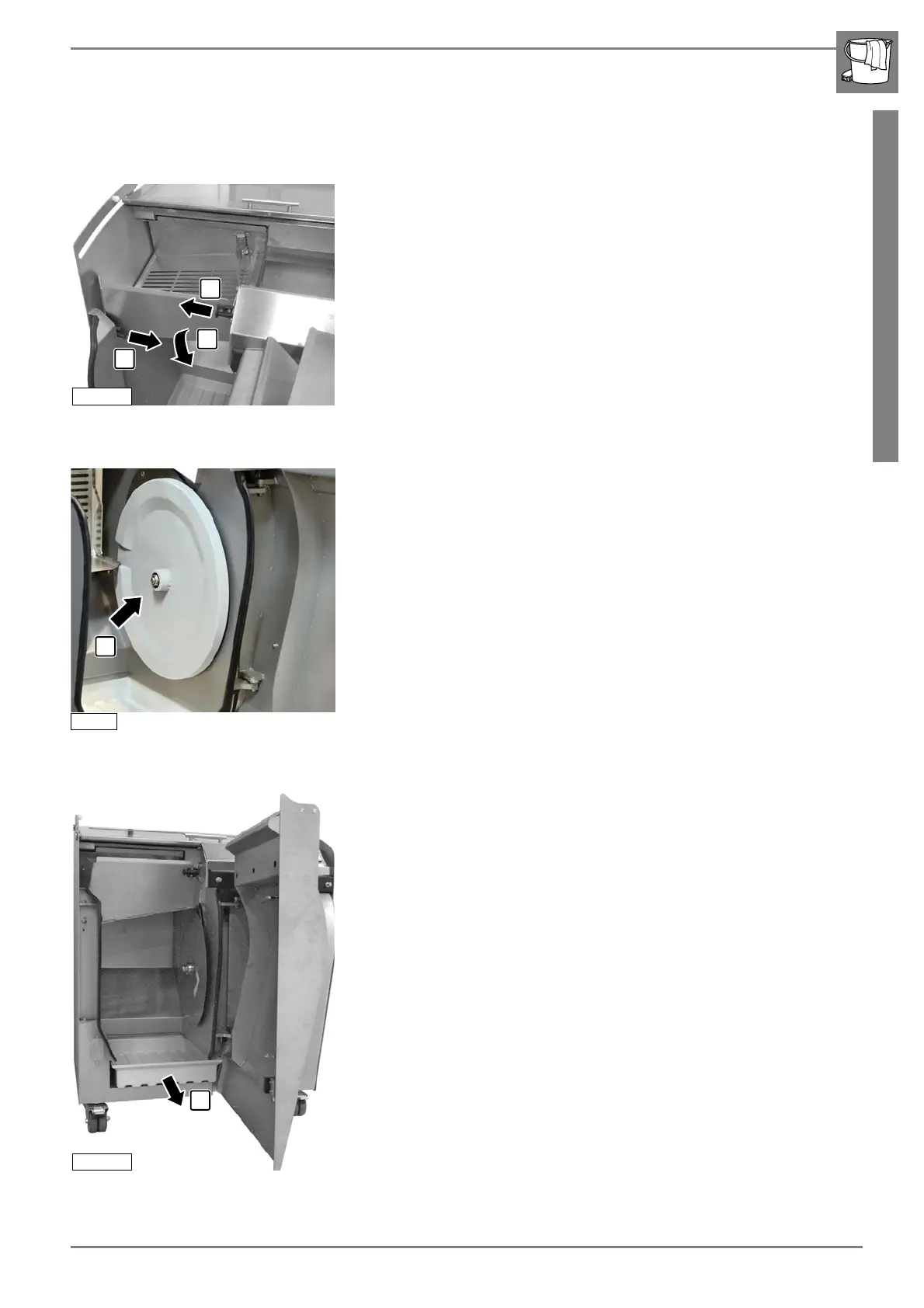 Proceed as follows to lower the removal chute for cleaning: