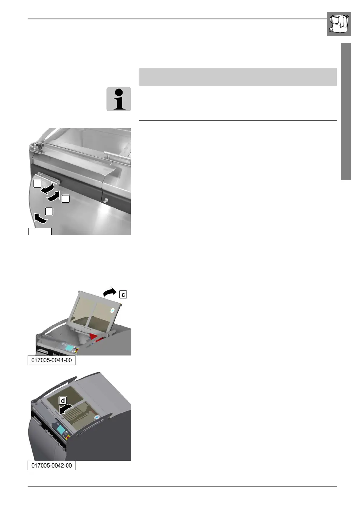 1. Swivel the opened front door 1 to the machine.