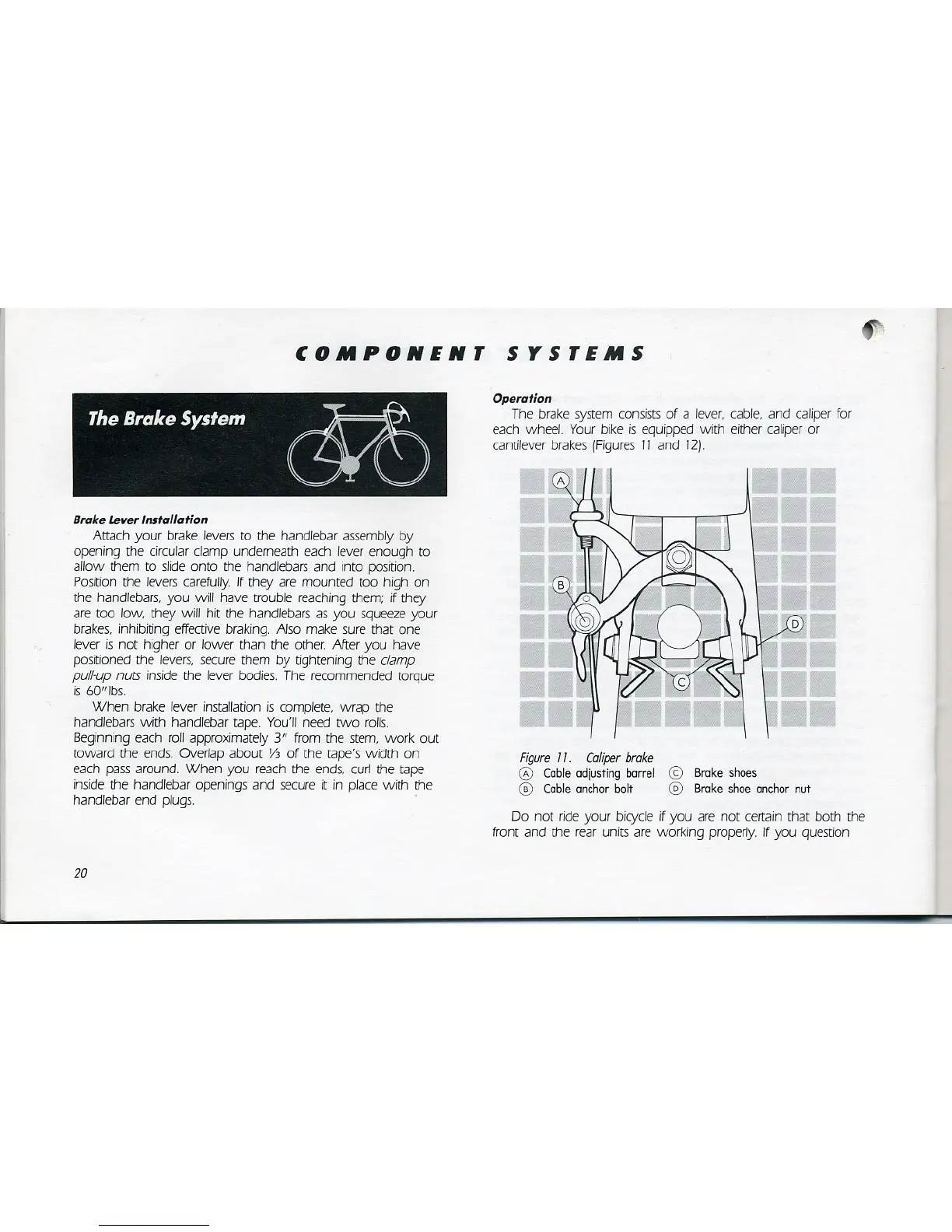 Trek 300 - The Brake System; Brake Lever Installation; Operation