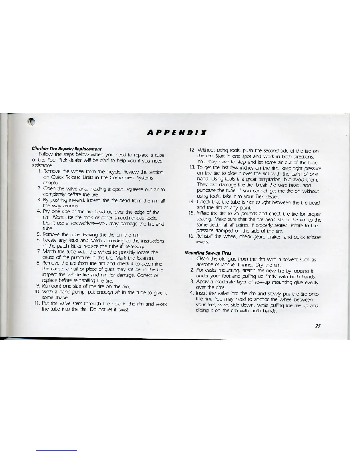 Trek 300 - Clincher Tire Repair;Replacement; Mounting Sew-Up Tires
