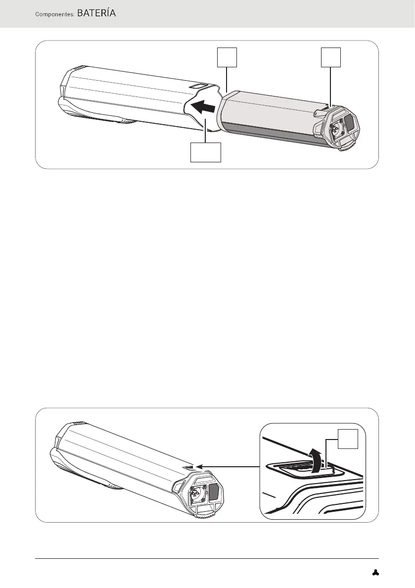 soporte de la batería, el botón de la batería se desliza hasta la abertura