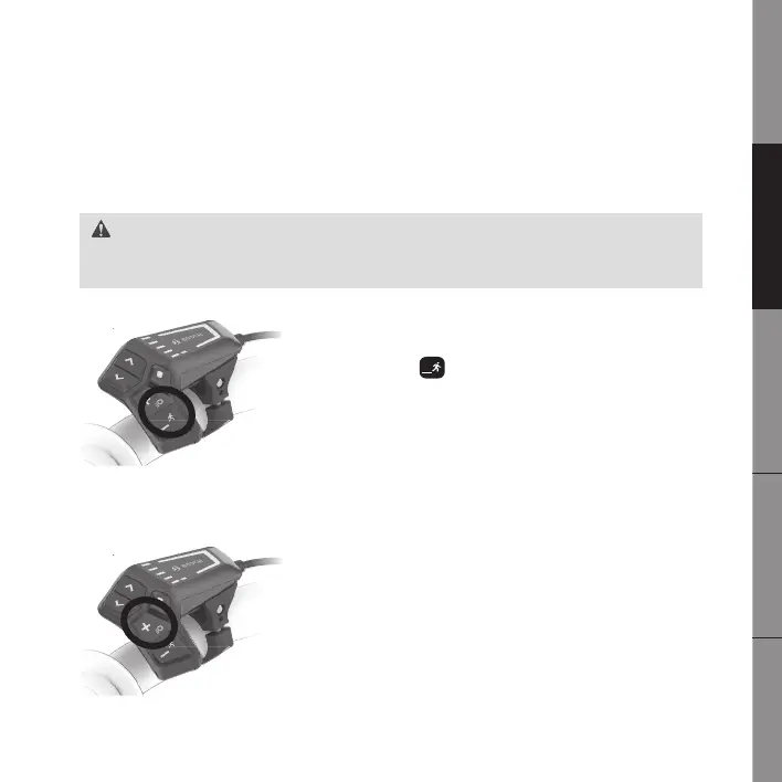 WARNING: Walk assistance should only be used when you are walking your bike. Never