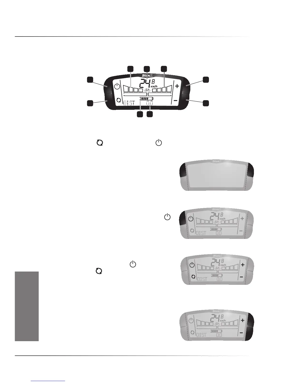 1•Vitesse2•Niveaud’assistanceactuel3•ToucheMarche/”+”4•Touche“-”5•Distancepartielle,
