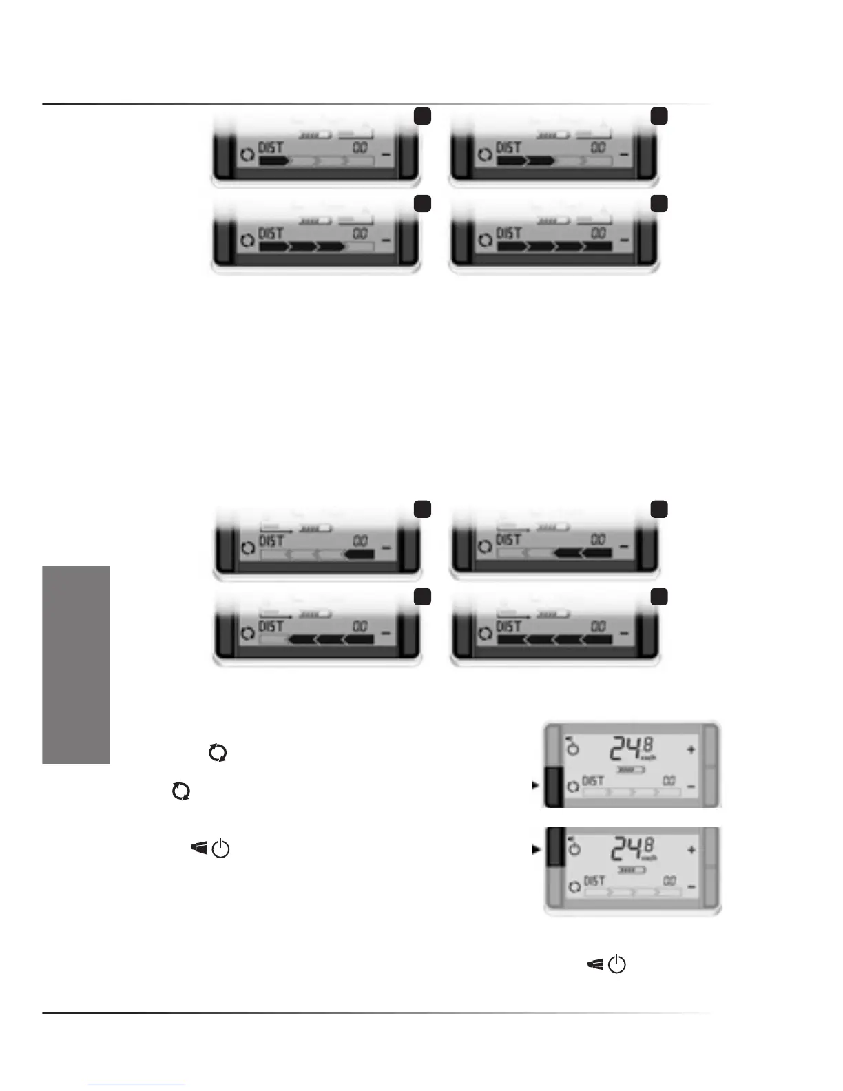 • Van modus wisselen (zie afstand, kilometerteller, chronometer, gemiddelde snelheid, klok)