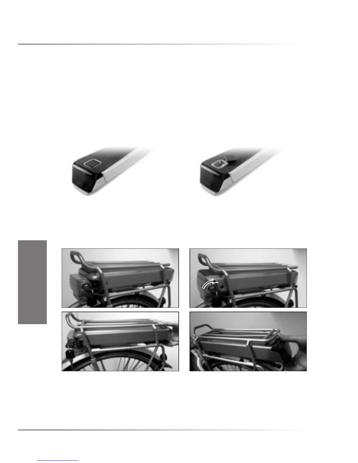 Schuif de accu met de aansluitzijde eerst in de achterdrager (stap 1). Schuif de accu helemaal naar