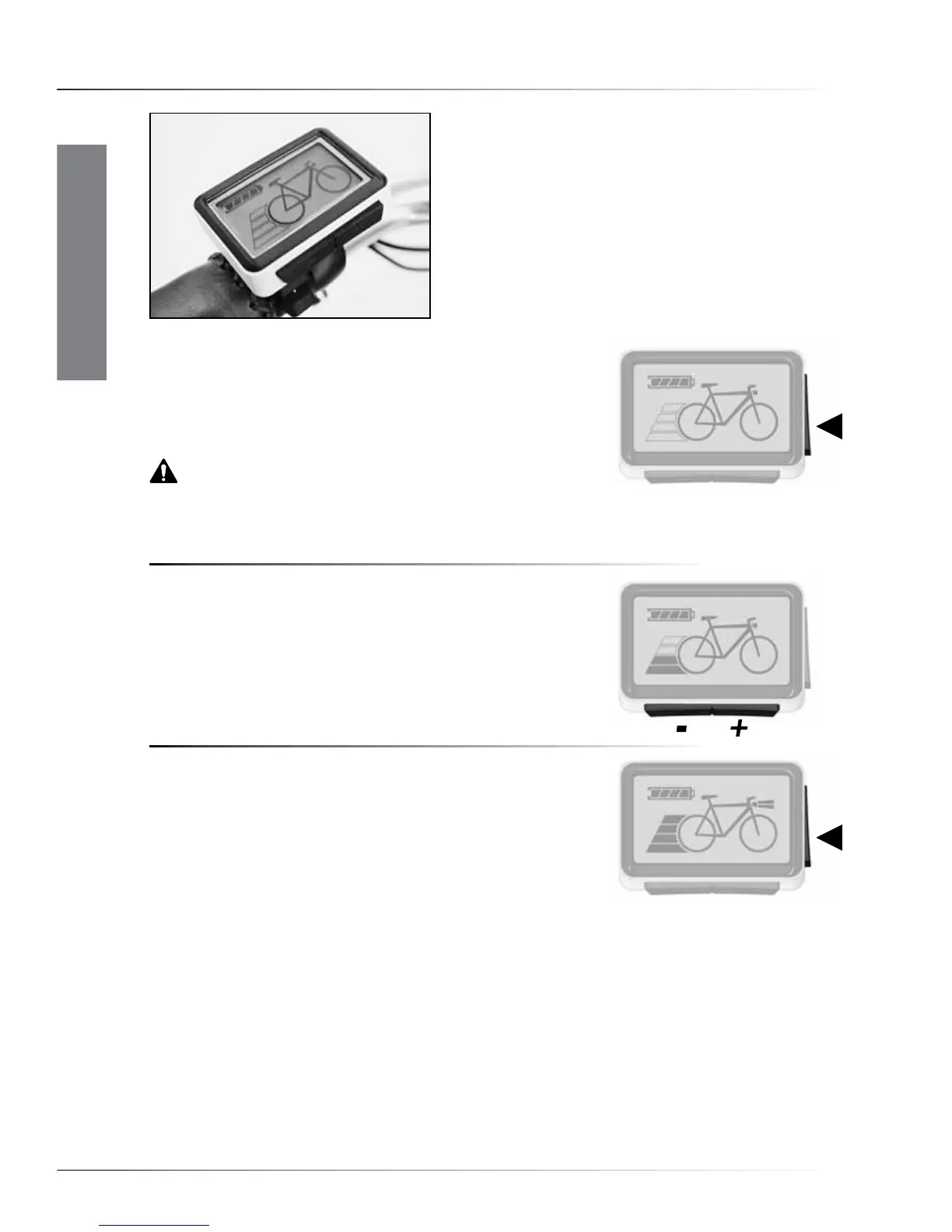 After switching on, the bike is always in cycle mode (zero assist).
