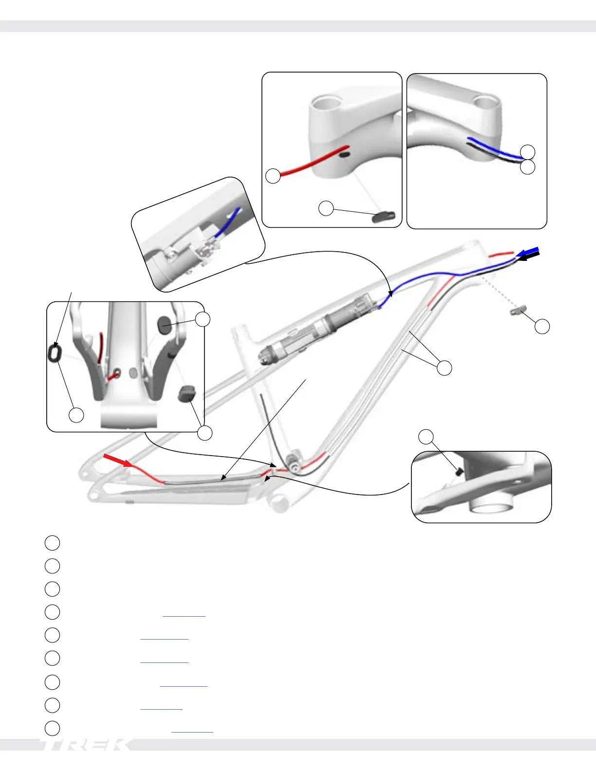 Note: The fork must be removed to route the brake hose and IsoStrut lockout cable housing.