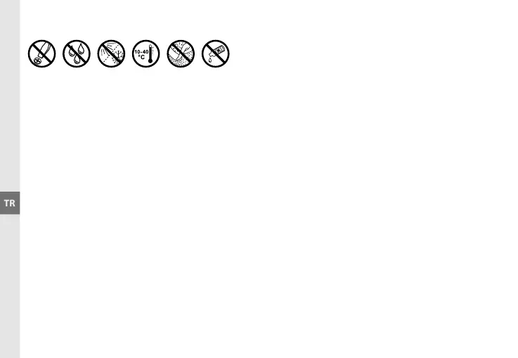 Cihazı asla nemli, yoğuşma suları ve ıslaklık olan yerlere bırakmayın. Cihazı normalin üzerinde yüksek ve düşük sıcaklıklardan ve sıcaklık değişimlerinden •