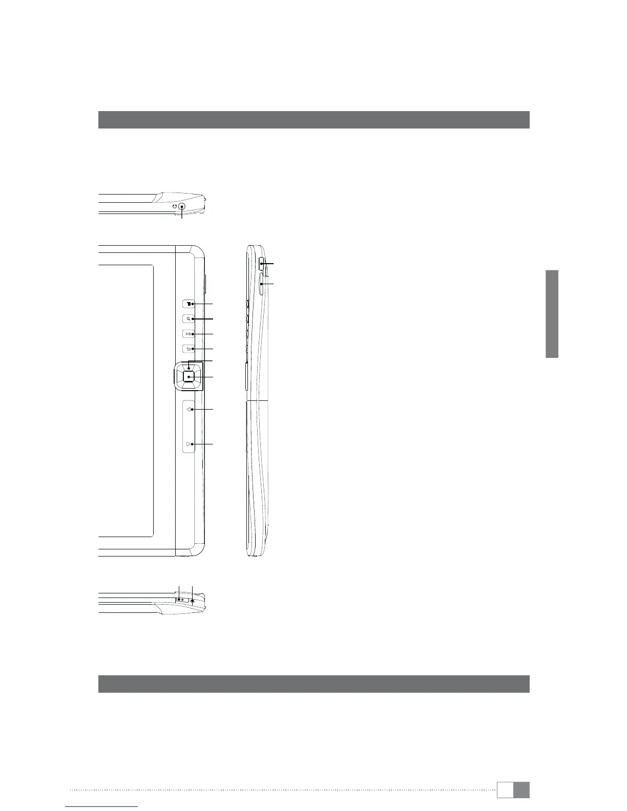 1) Elementos de manejo y conexiones del TrekStor eBook-Reader