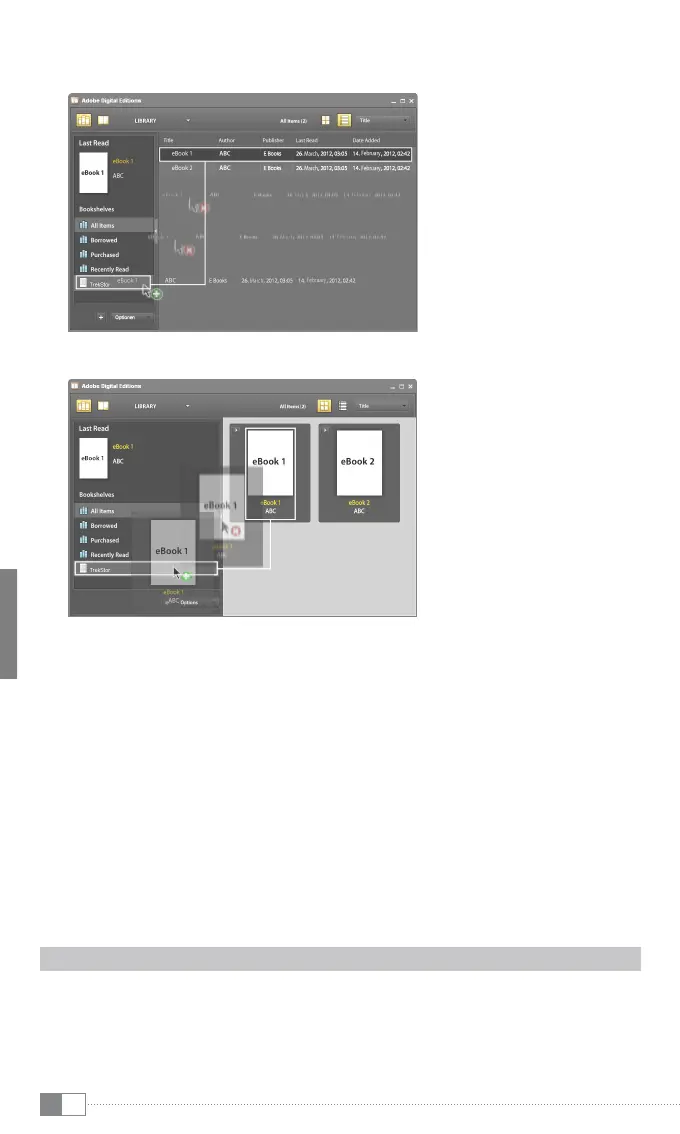 Cliquez simplement sur le eBook et déplacez le en maintenant le bouton de souris sur