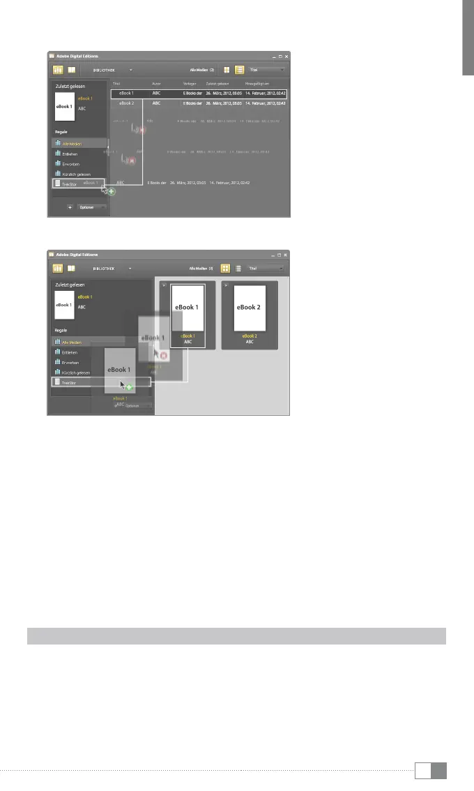 das eBook an und ziehen Sie es mit gedrückter Maustaste auf Ihren Reader ("trekstor").