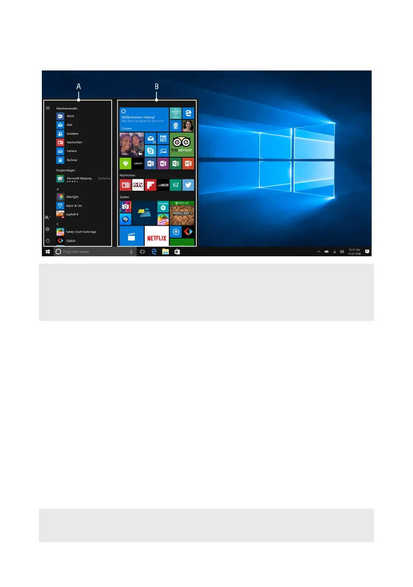 of live tiles (apps and favourites) according to your own preferences, pin new items