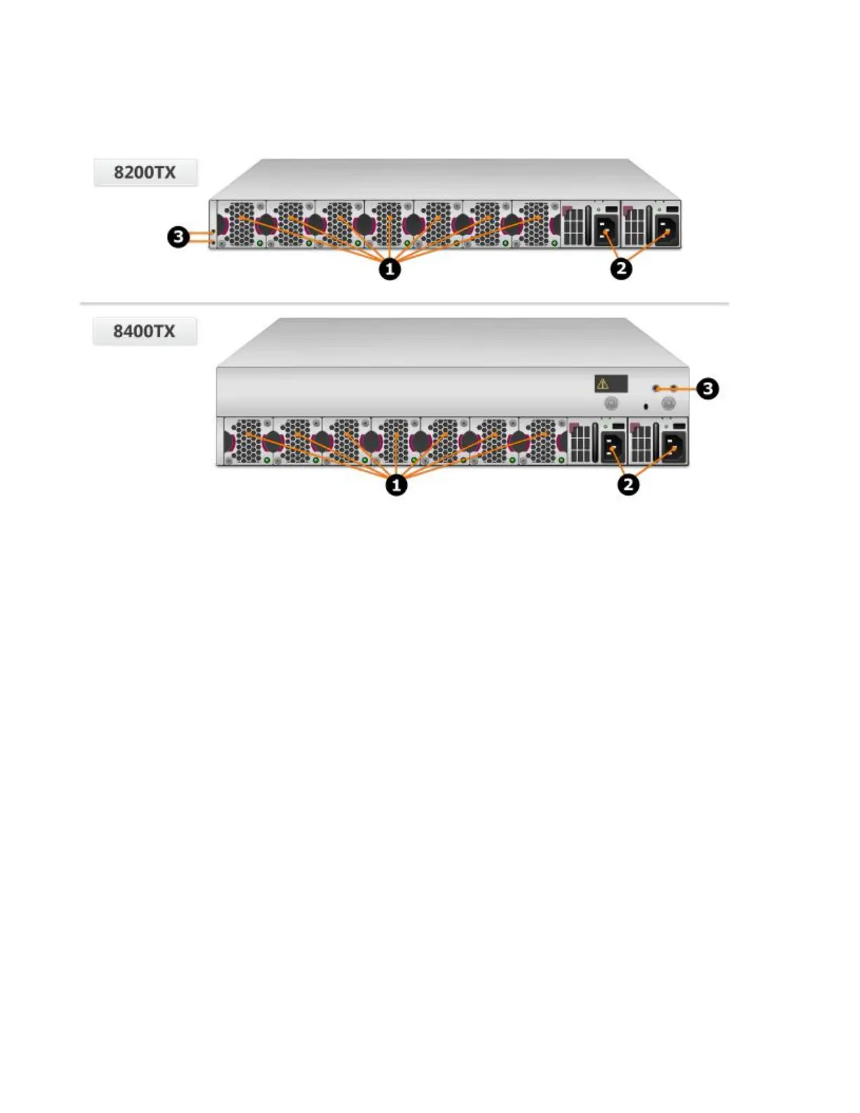 2. Power supply modules (Power supply 1 is on the left; Power supply 2 is on the right)