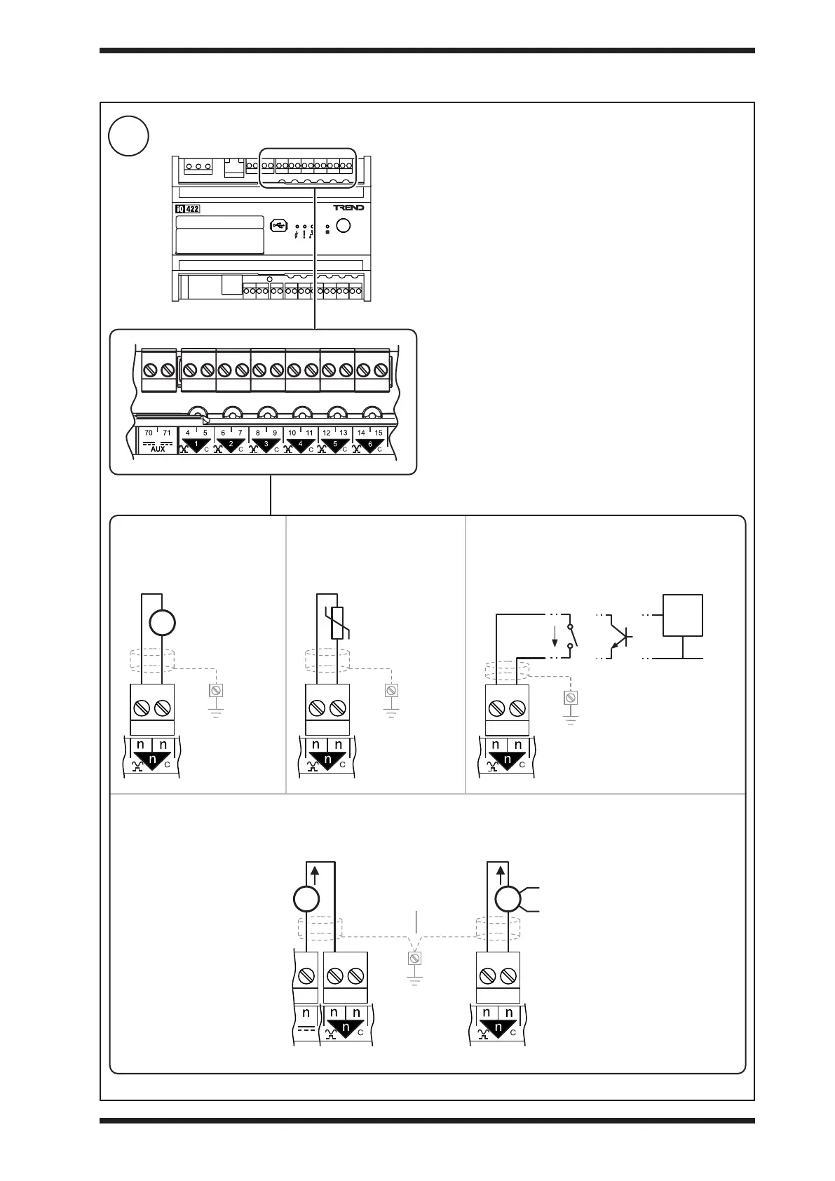 Connect Universal Inputs IN1 to IN6 (if required - not applicable to IQ4NC/00/..)