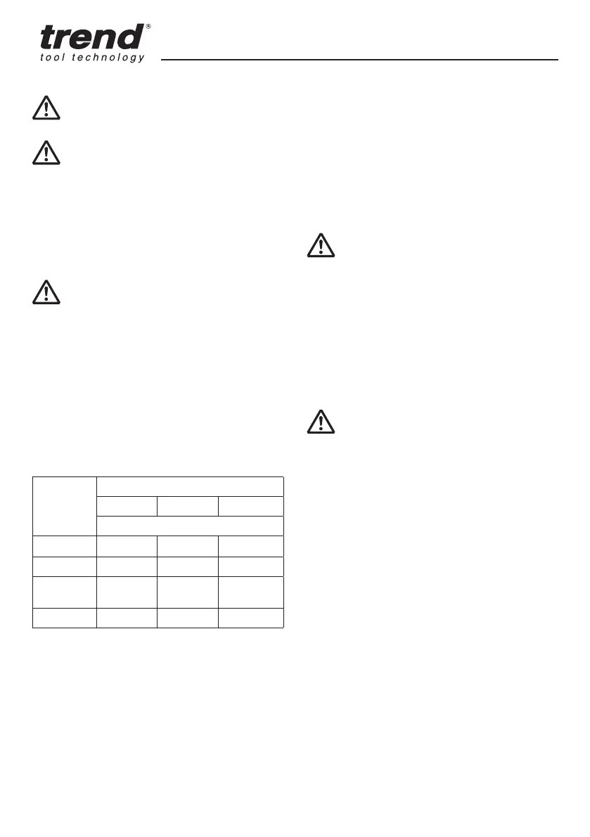 * Do not use cutters larger than 50mm unless the router