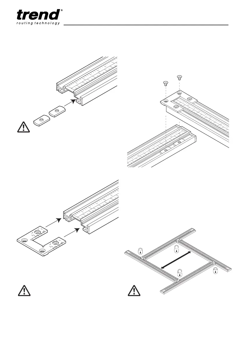 each extrusion, line up the T-nut and using