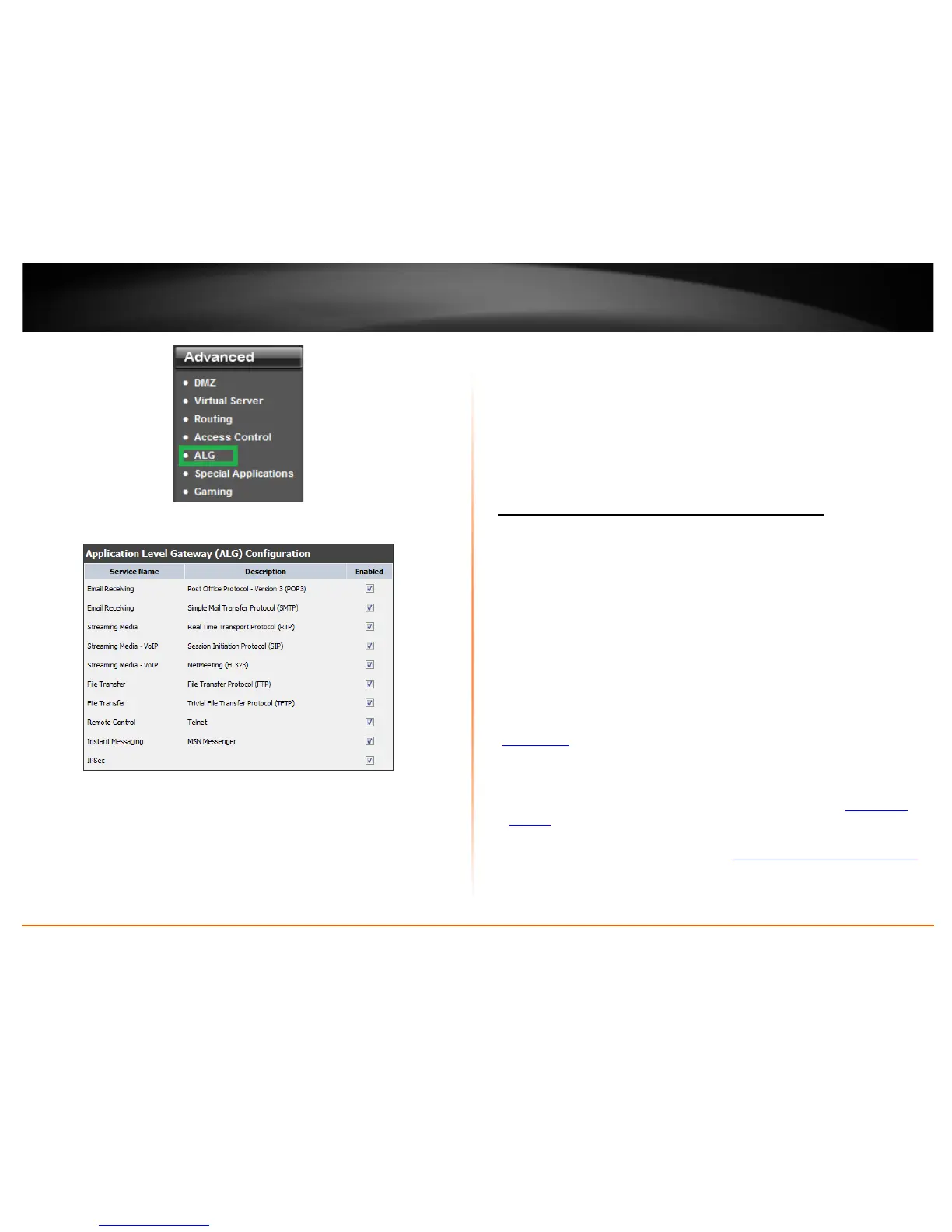 • File Transfer (TFTP): Allows TFTP protocol to be used through your router