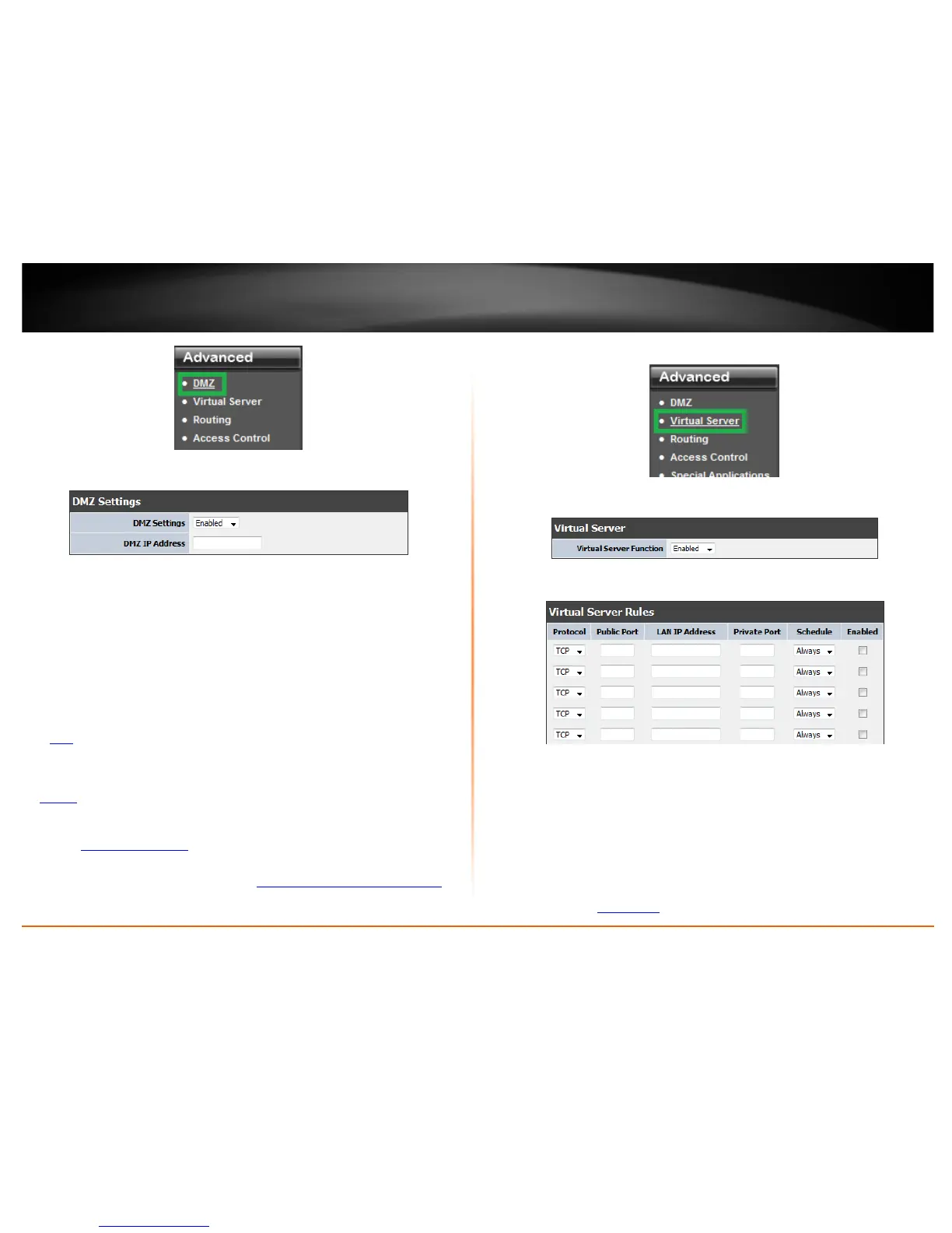 DMZ” on page 34) in which DMZ forwards all ports instead of only specific ports