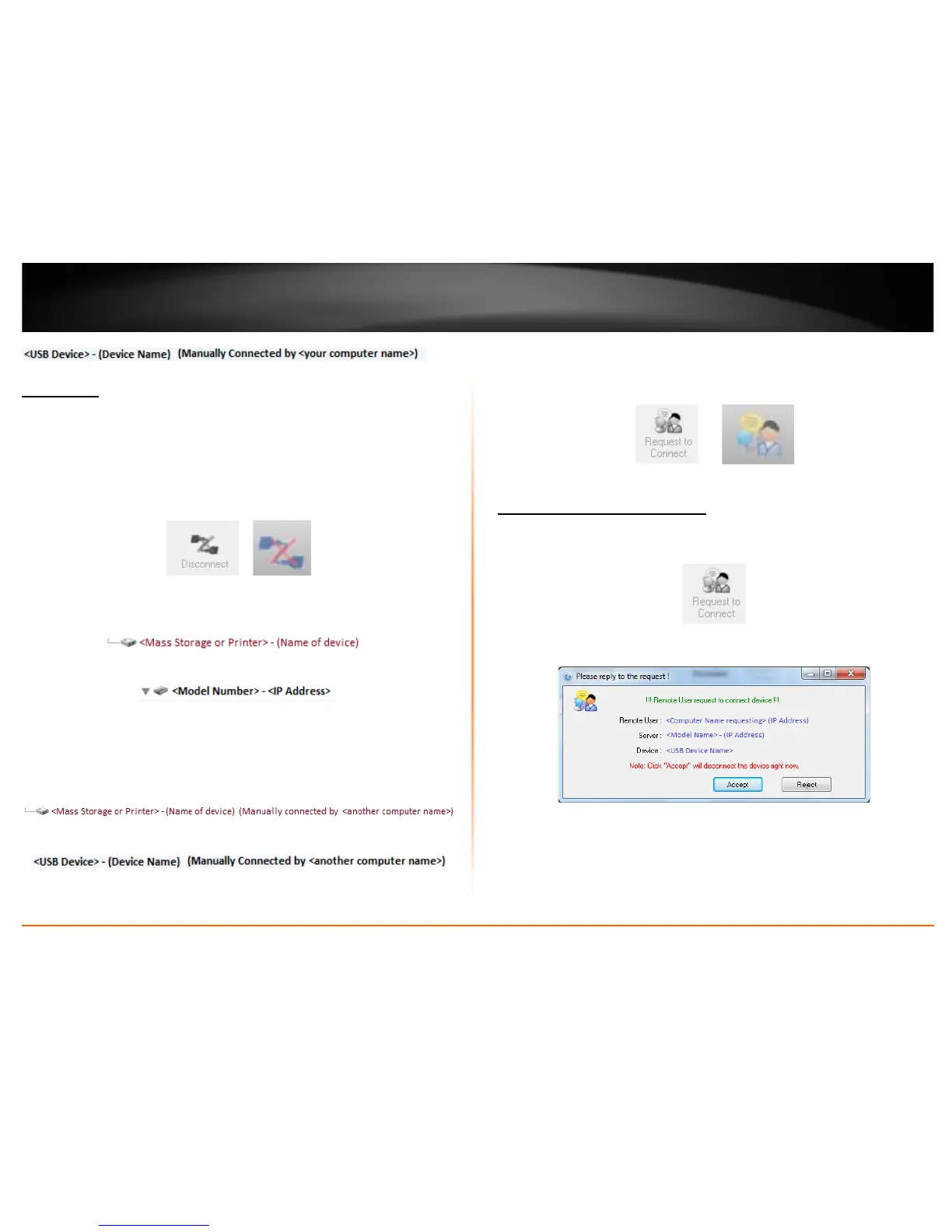 If a USB device is currently being used by another computer, click the Request to