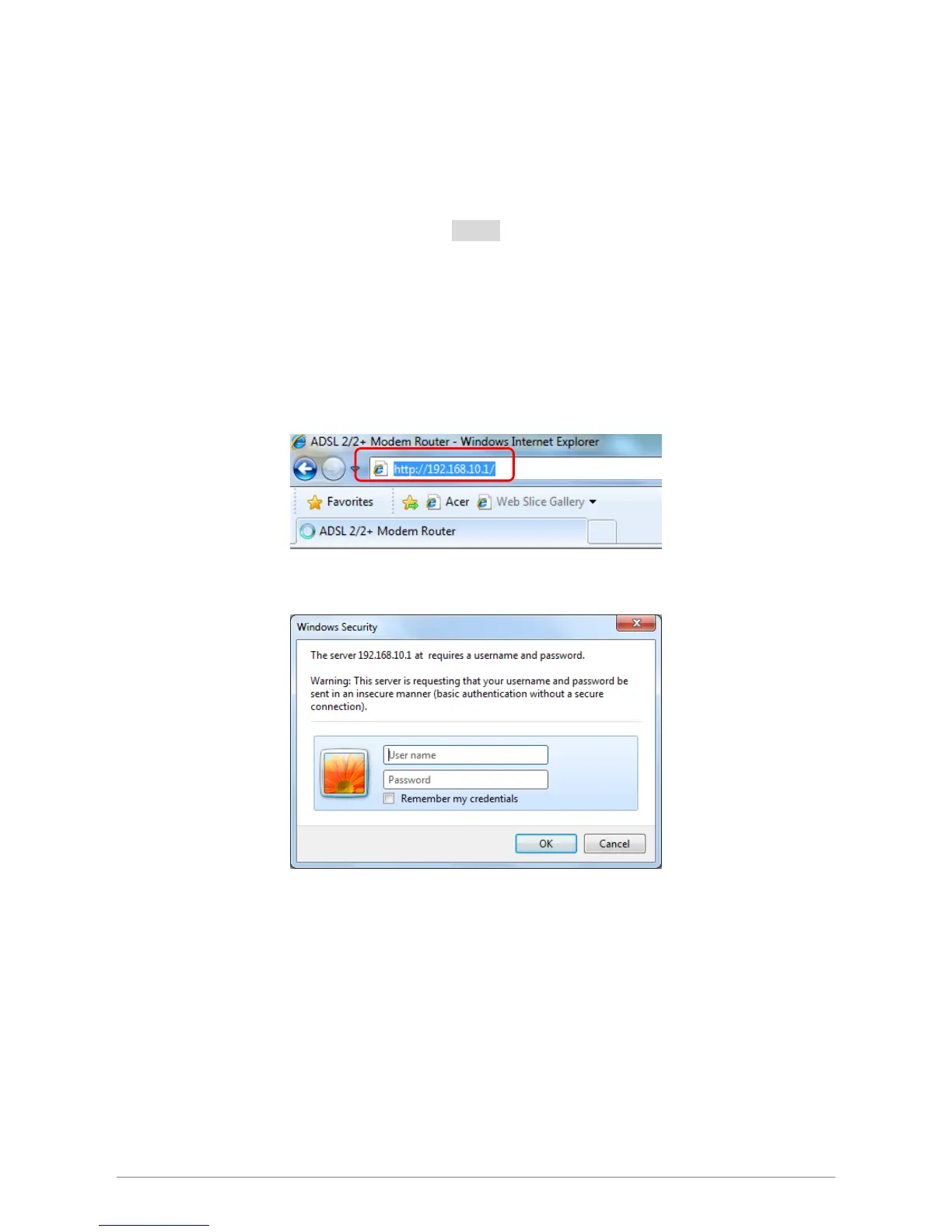 Launch your web browser, and enter the TDM-C500 ADSL2/2+ Modem Router’s default IP