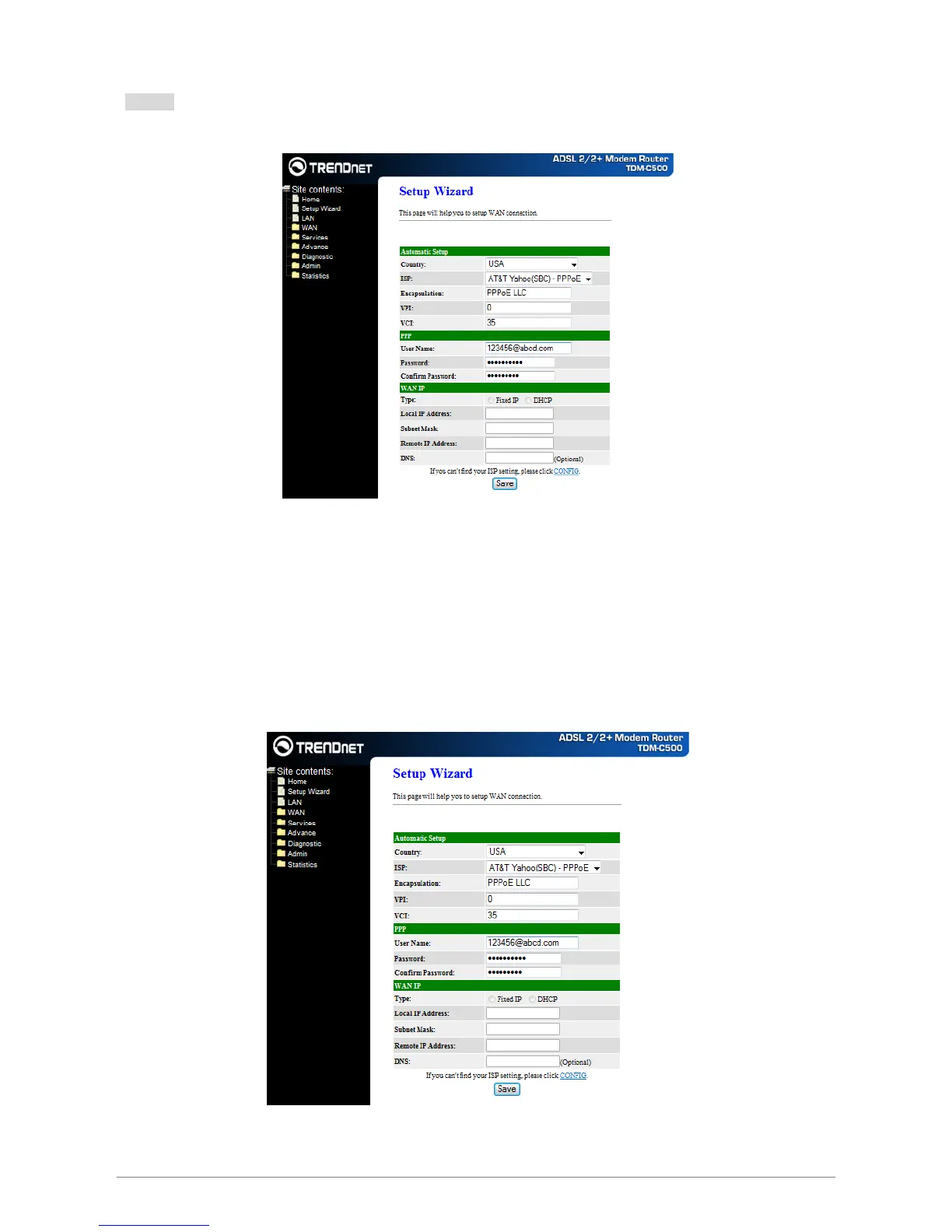 (ISP). Click “Save” after setup.