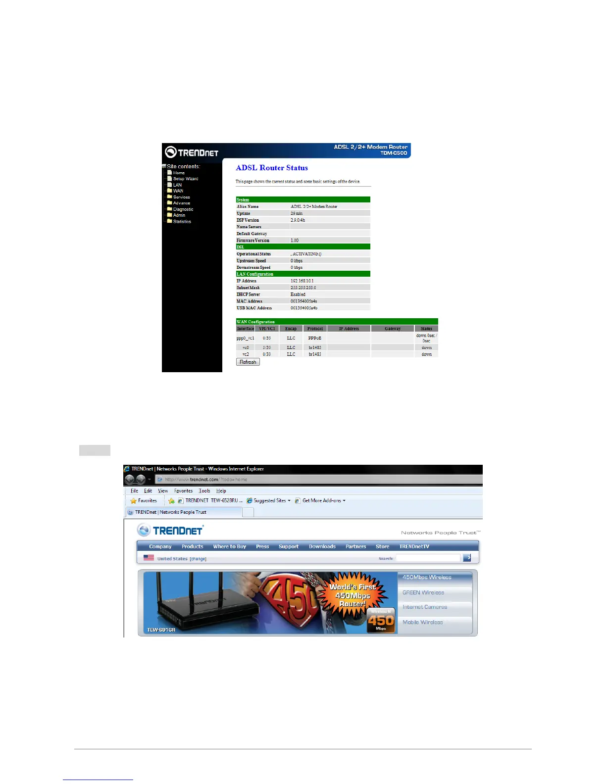 The following page with the device setup information will be displayed.