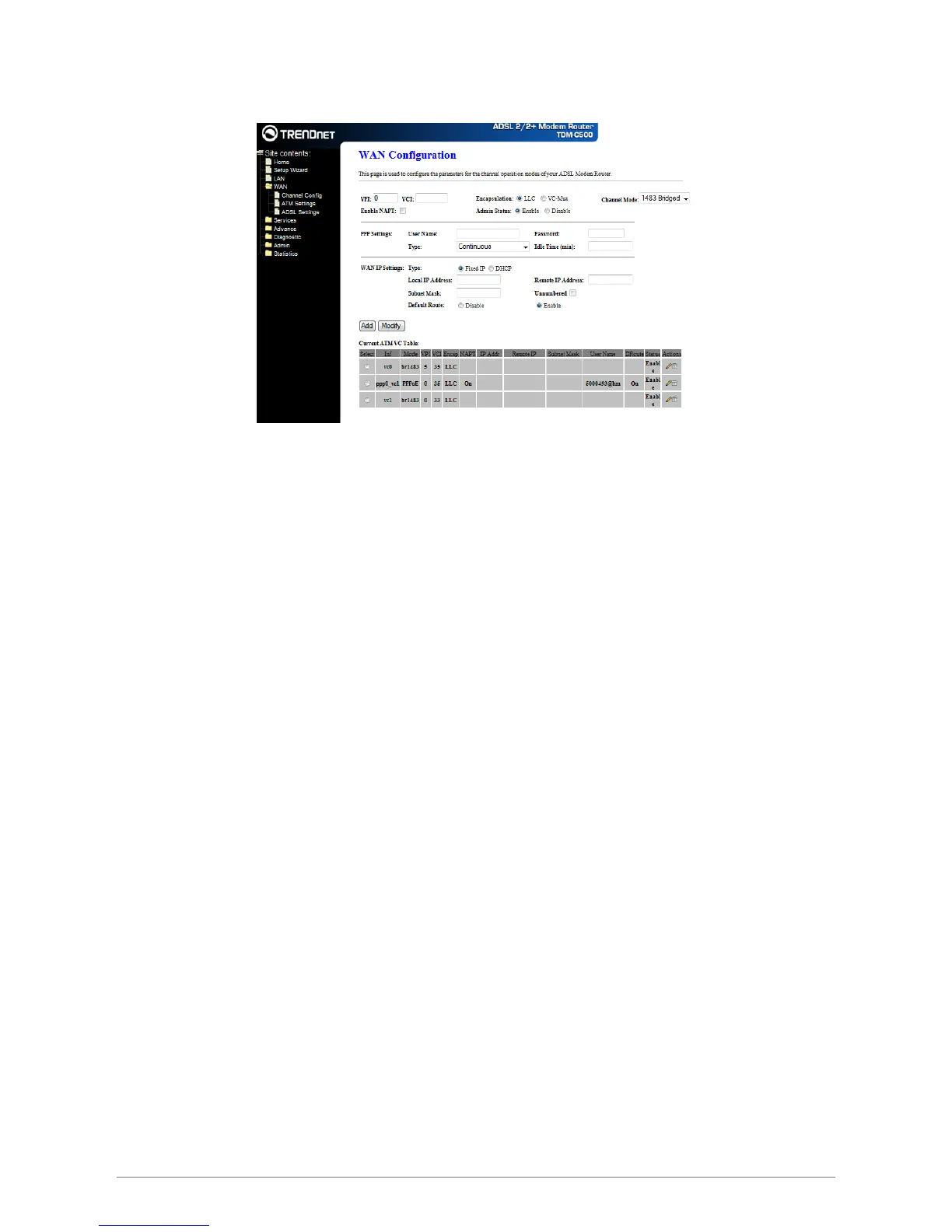 Note: LLC and VC-Mux are two different methods of encapsulating the PPP packet.
