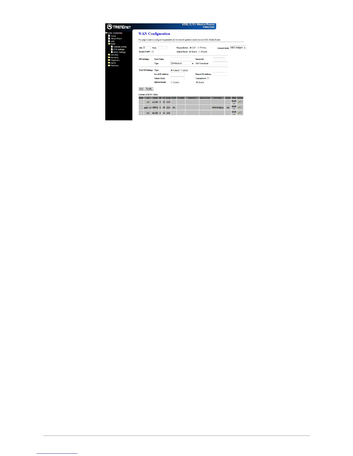 ; Channel Mode: Select “PPPoA” from the drop down manual.