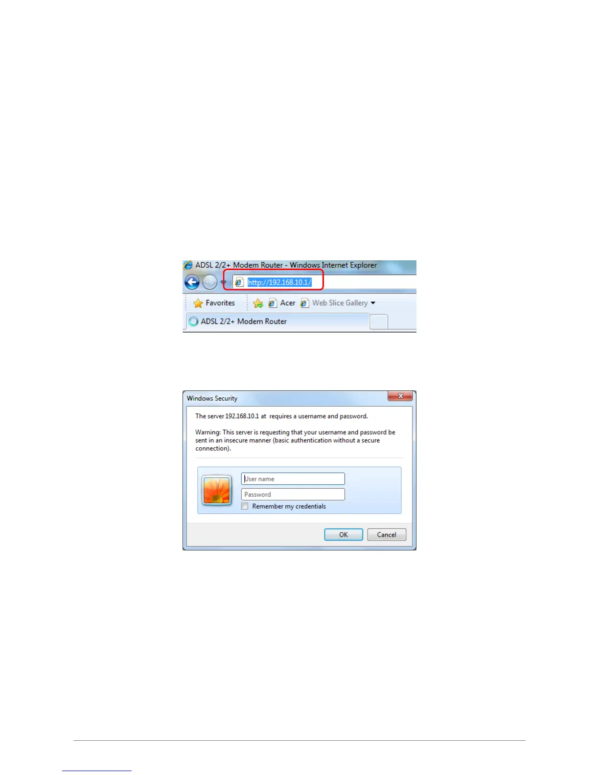 Launch your web browser, and enter the TDM-C504 4-PORT ADSL2/2+ Modem Router’s