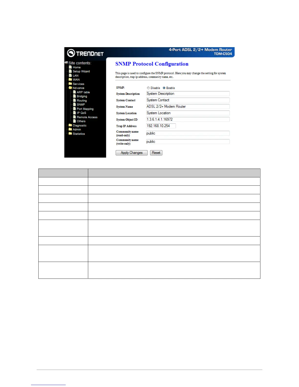 SNMP Enable/disable SNMP Feature.