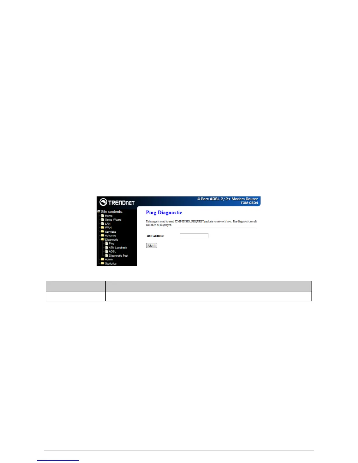 and enter the IP address in the Host Address field. Click Go! To start the ping command, the ping result will