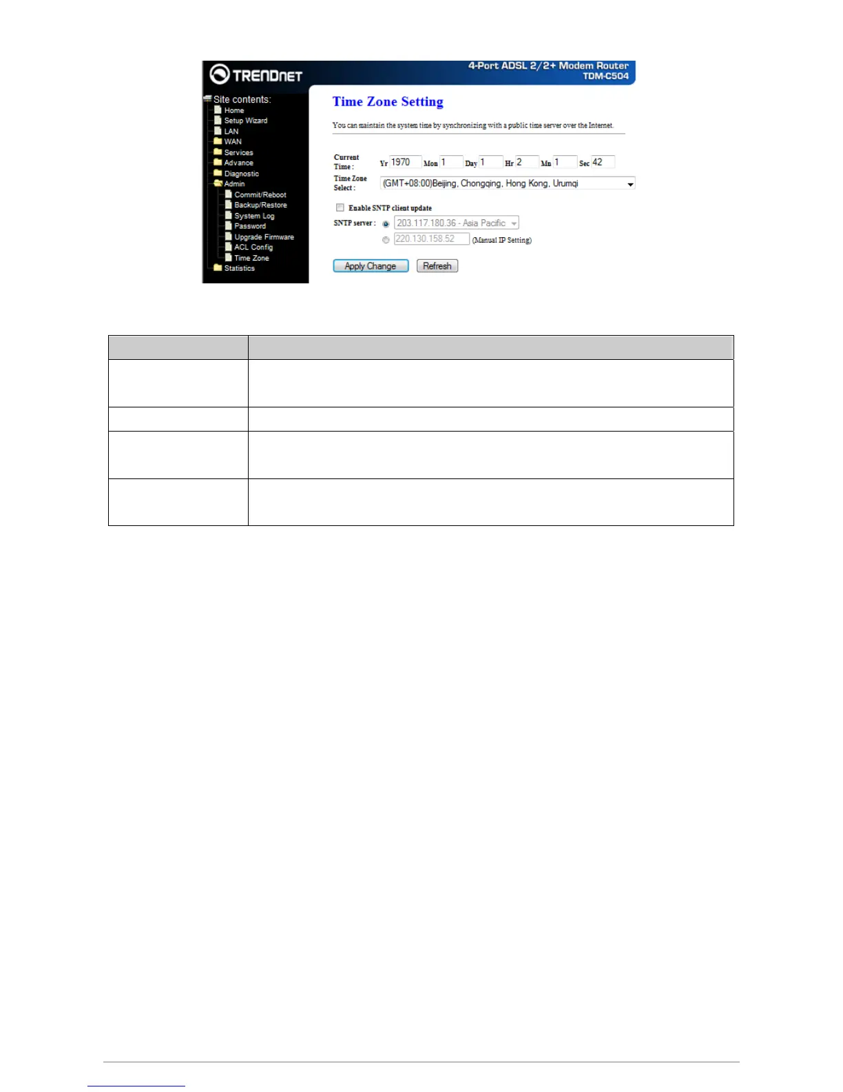 Time Zone Select The time zone in which the DSL device resides.